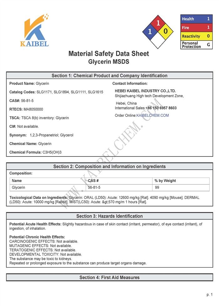 Glycerin is an organic compound with a chemical formula of C3H8O3. It is a colorless, odorless, transparent viscous liquid that can absorb moisture from the air, as well as hydrogen sulfide, hydrogen cyanide and sulfur dioxide. Miscible in any proportion, insoluble in benzene, chloroform, carbon tetrachloride, carbon disulfide, petroleum ether and oils, mainly used as organic chemical raw materials, also used as analytical reagents and lubricating laxatives.